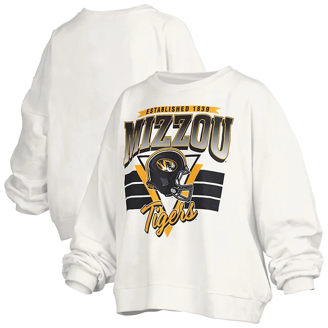 Sweat-shirt surdimensionné rétro Janice blanc pour femme, modèle Pressbox, des Missouri Tigers, longueur taille