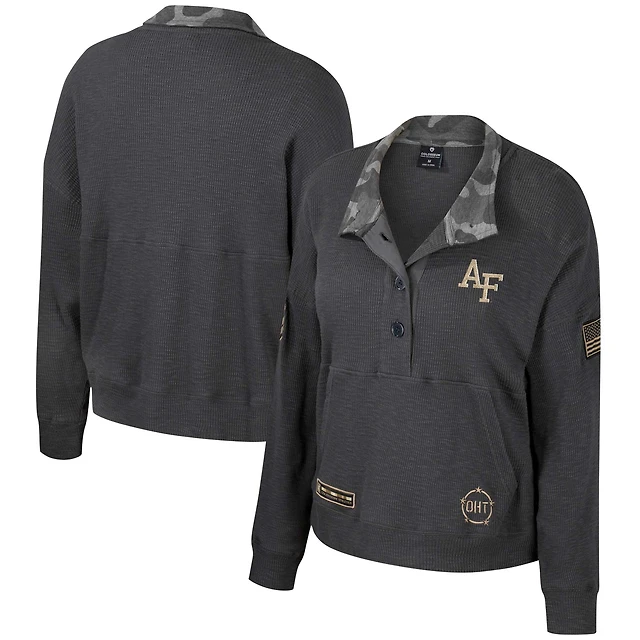 Sweat-shirt thermique Colosseum Heather Charcoal Air Force Falcons OHT pour femmes, Appréciation militaire Payback Henley