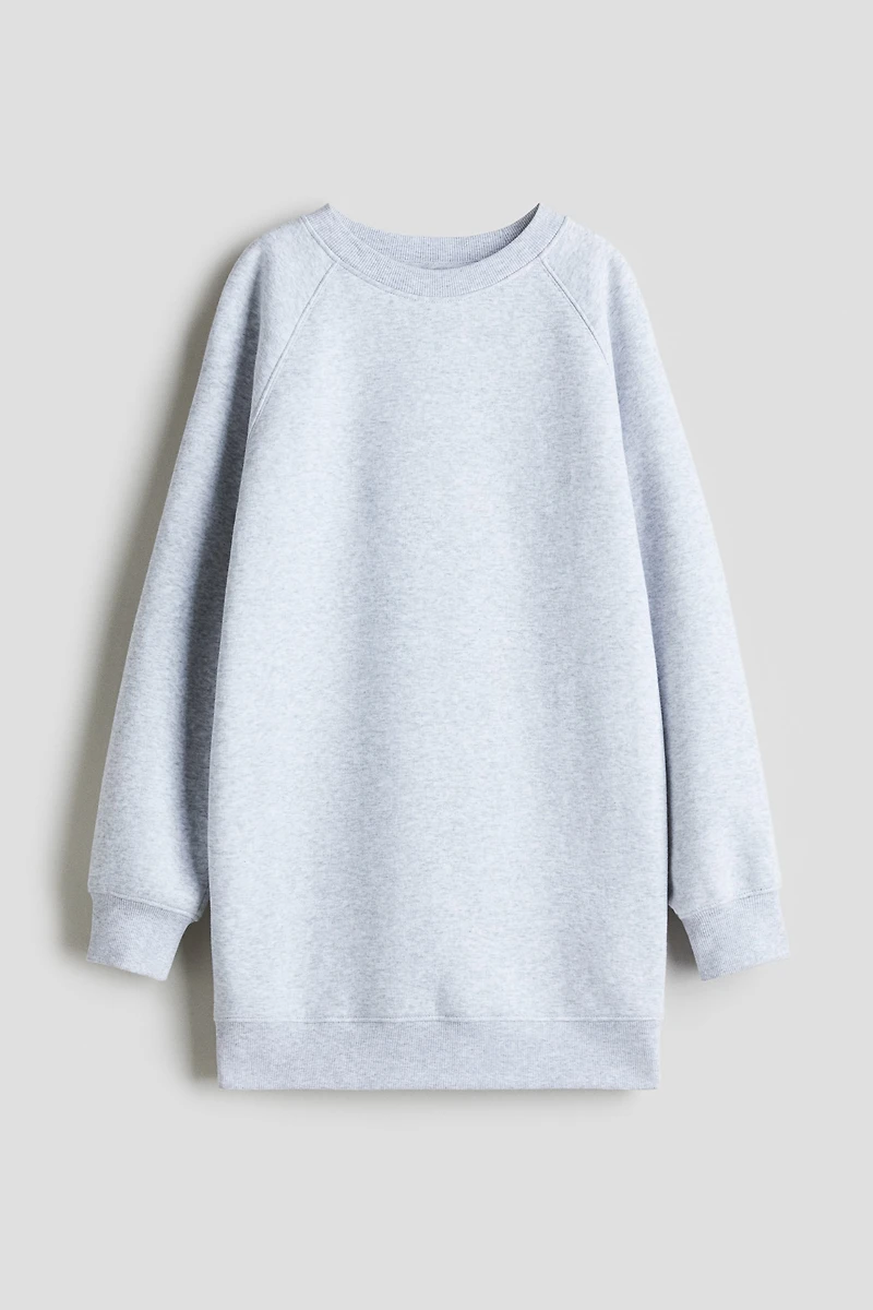 Dress in sweatshirt fabric with a soft, brushed inside. Round neckline, long raglan sleeves, and ribbed neckline, cuffs, and hem.