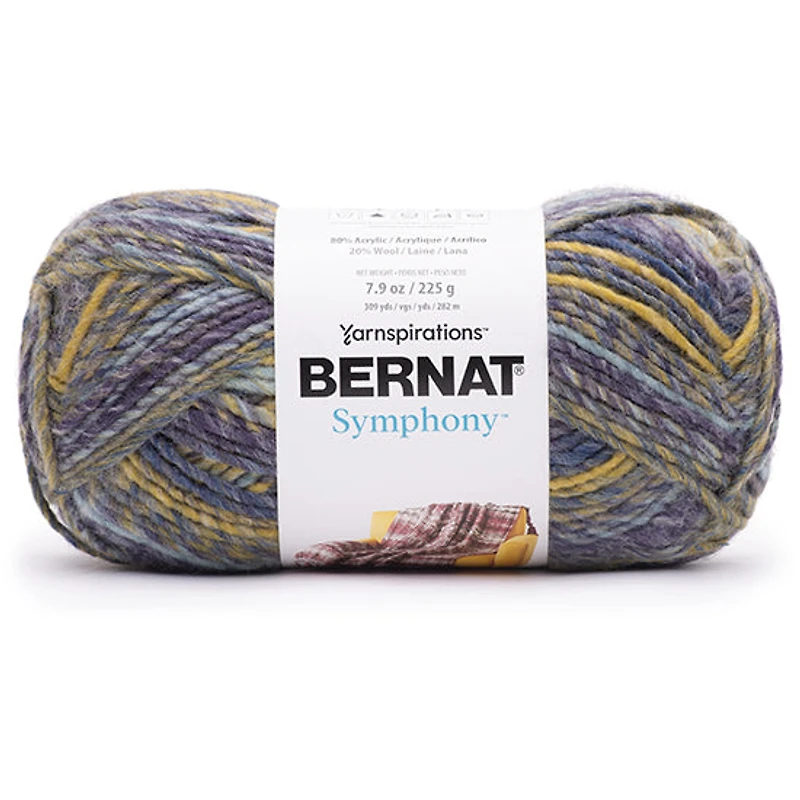 Bernat Symphony is an acrylic/wool blend yarn that is perfect for multi-texture projects! It’s conveniently designed in the same gauge as Bernat Velvet and Bernat Freesia—add tactile contrast to your pillows and afghans by combining them, or use Bernat Symphony on its own to highlight texture and contemporary tonal shades. Features: