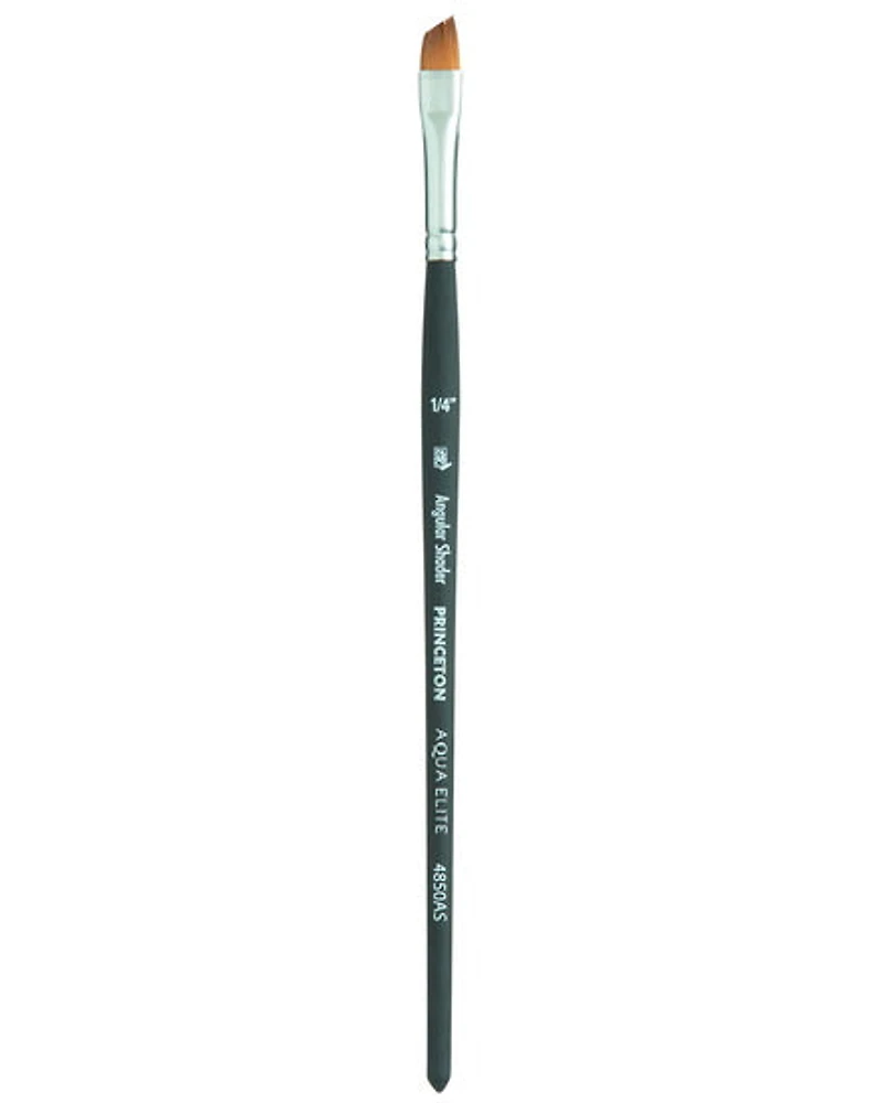 Princeton Aqua Elite is an innovative synthetic hair paintbrush that is indistinguishable from natural Kolinsky, yet significantly more affordable. The performance of this new synthetic hair brush technology makes Princeton Aqua Elite the new standard for discerning watercolour artists.Aqua Elite Angled Shader brushes feature a short handle.Brush careCaring for paintbrushes is essential to keeping them in good working condition, and to prolonging their life span. Never let paintbrushes dry before cleaning.
