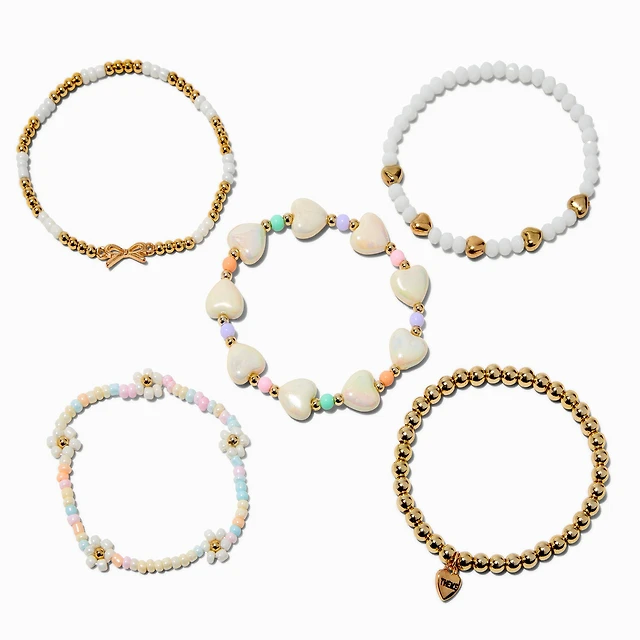 T H E M E x Claire's Gold-tone Heart Stretch Bracelets- 5 Pack