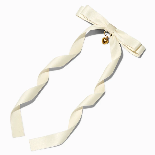 T H E M E x Claire's White Long Tail Gold-tone Heart Charm Hair Bow Clip