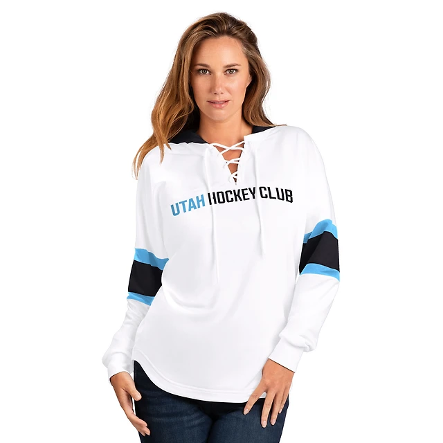 T-shirt à capuche et lacets manches longues pour femme G-III 4Her par Carl Banks, blanc, Utah Mammoth Goal Zone