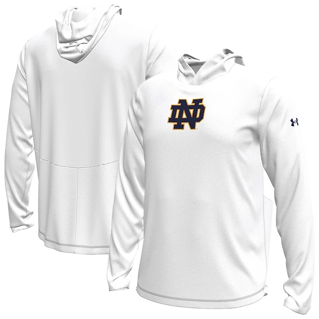 T-shirt à capuche et manches longues Under Armour blanc pour homme, Fighting Irish de Notre Dame