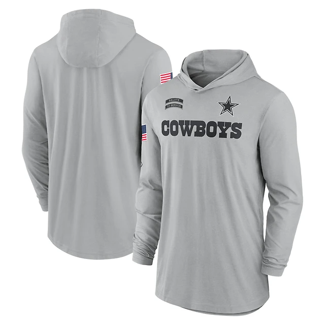 T-shirt à capuche léger et performant manches longues Nike Dallas Cowboys 2024 Salute to Service pour homme, gris