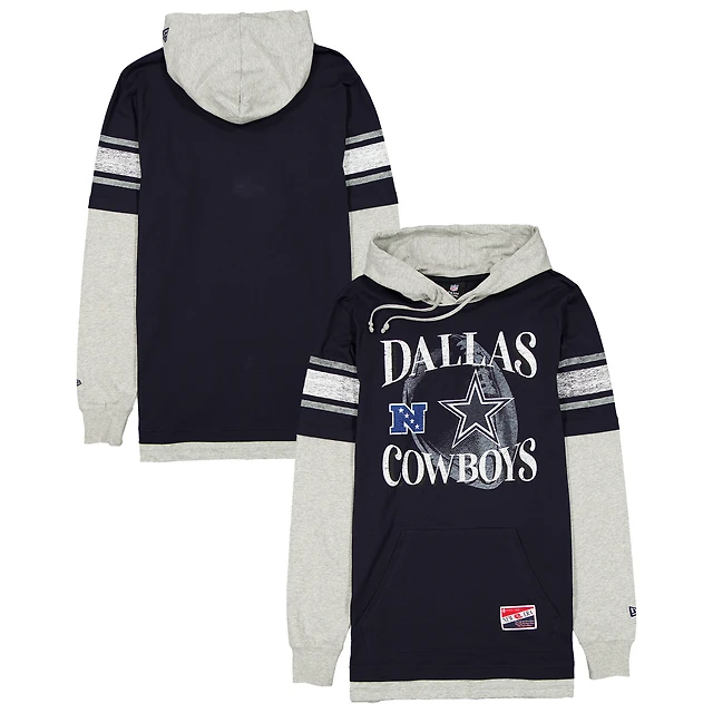 T-shirt à capuche manches longues et superpositions New Era bleu marine Dallas Cowboys Twofer pour homme