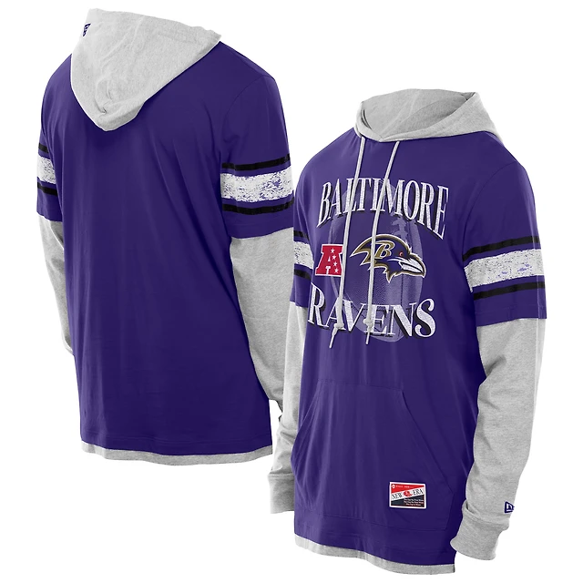 T-shirt à capuche manches longues et superpositions violet Baltimore Ravens de New Era pour homme