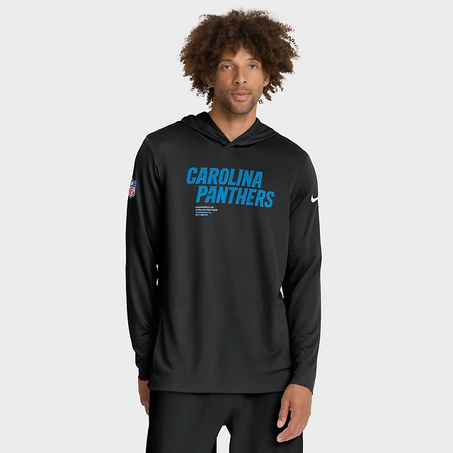 T-shirt à capuche manches longues Nike Black Carolina Panthers Sideline Pure Fury Dri-FIT pour homme