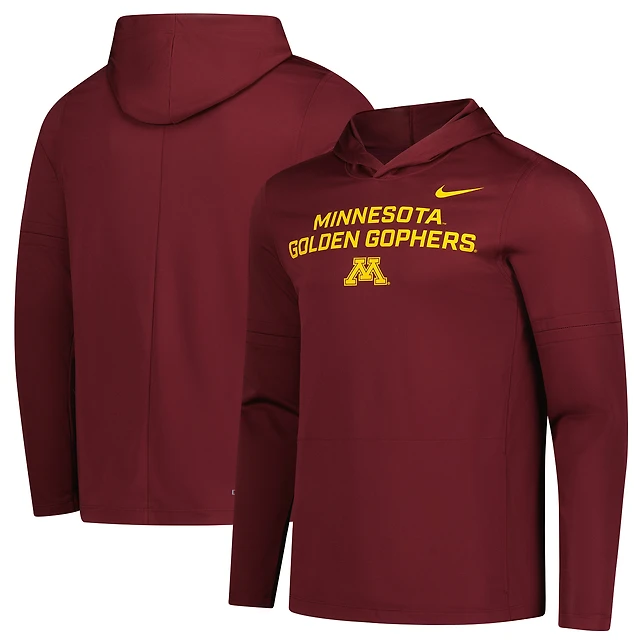 T-shirt à capuche manches longues Nike Bordeaux Minnesota Golden Gophers 2025 Sideline Dri-FIT pour homme