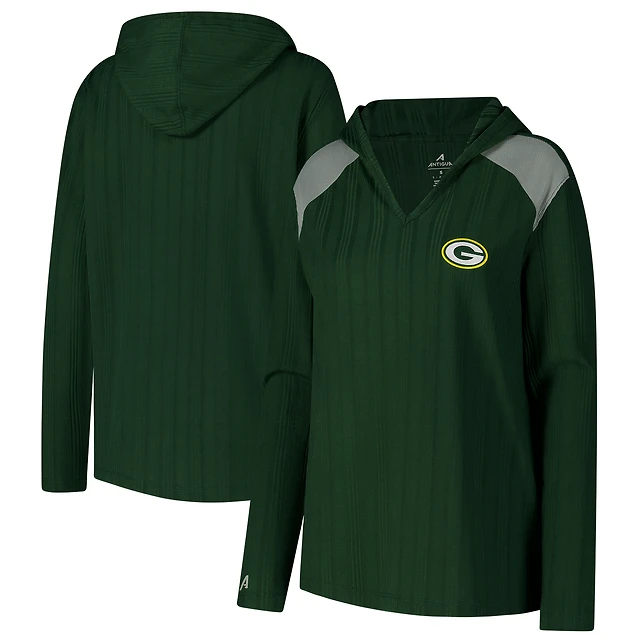 T-shirt à capuche manches longues Opulent Green Bay Packers pour femme Antigua