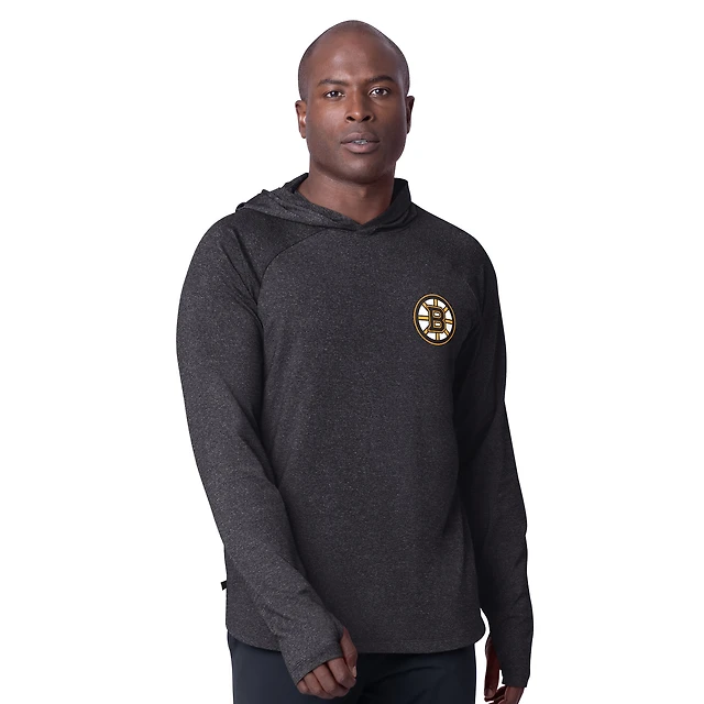 T-shirt à capuche manches longues raglan Fast Track des Bruins de Boston noir MSX by Michael Strahan pour homme