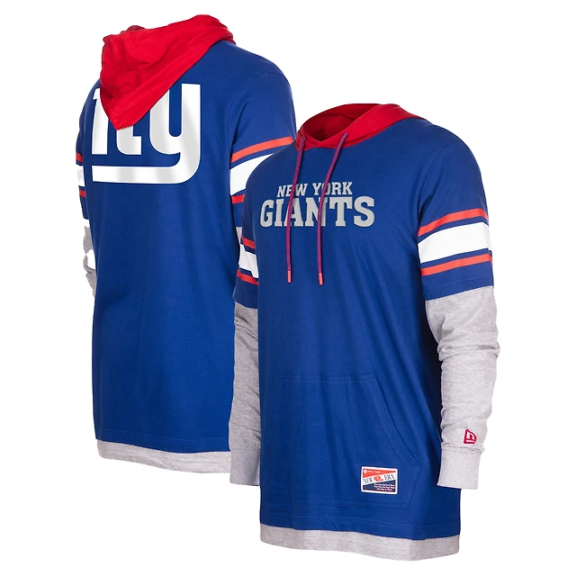 T-shirt à capuche manches longues Throwback Royal New York Giants Era pour homme