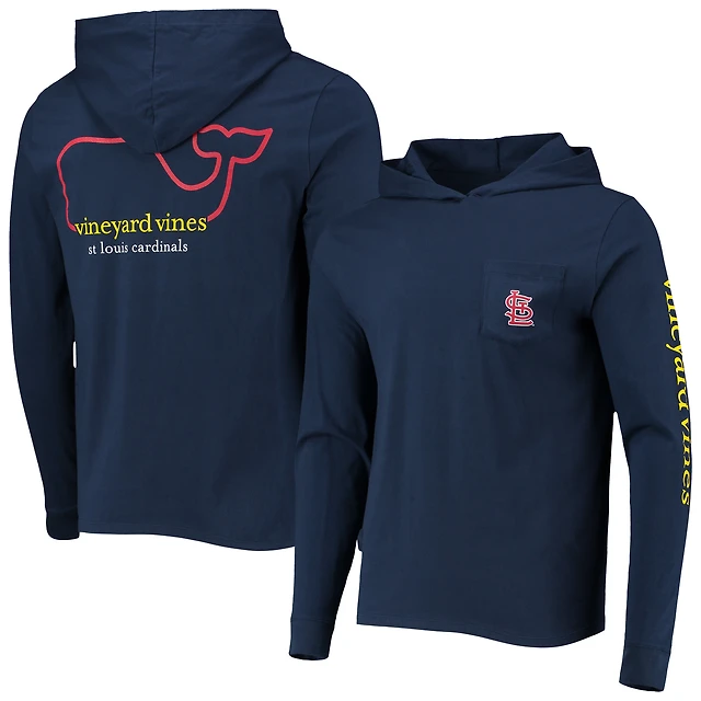 T-shirt à capuche manches longues Vineyard Vines pour hommes, bleu marine, St. Louis Cardinals