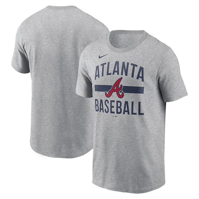 T-shirt à col arqué Nike gris chiné Atlanta Braves pour homme