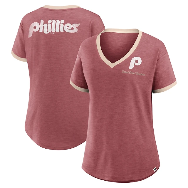 T-shirt à col en V bordeaux Philadelphia Phillies Binge Worthy Stadium pour femmes Fanatics