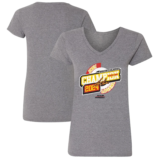 T-shirt à col en V de l'équipe Penske Heather Charcoal pour femmes Joey Logano, triple champion la NASCAR Cup Series