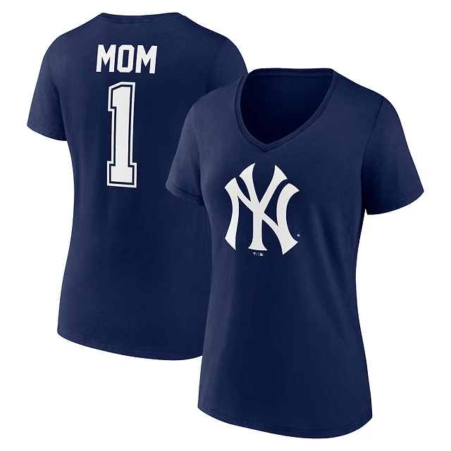 T-shirt à col en V Fanatics Navy New York Yankees pour femmes, grande taille, fête des mères #1 Mom