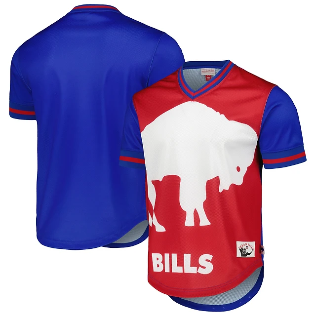 T-shirt à col en V maille Jumbotron 3.0 Royal Buffalo Bills Mitchell & Ness pour homme