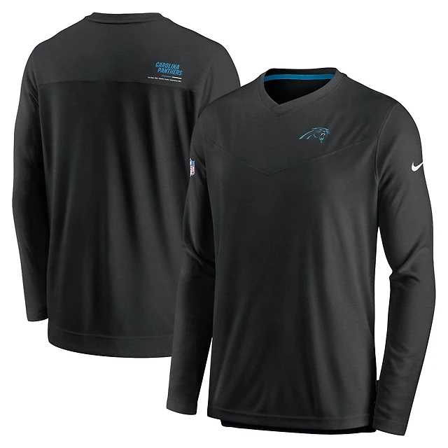 T-shirt à col en V manches longues et pour homme Nike Black Carolina Panthers Sideline Coach Chevron Lock Up