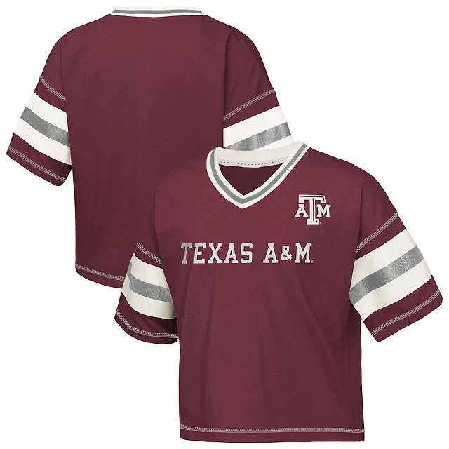 T-shirt à col en V marron pour jeunes filles des Texas A&M Aggies Grid Iron