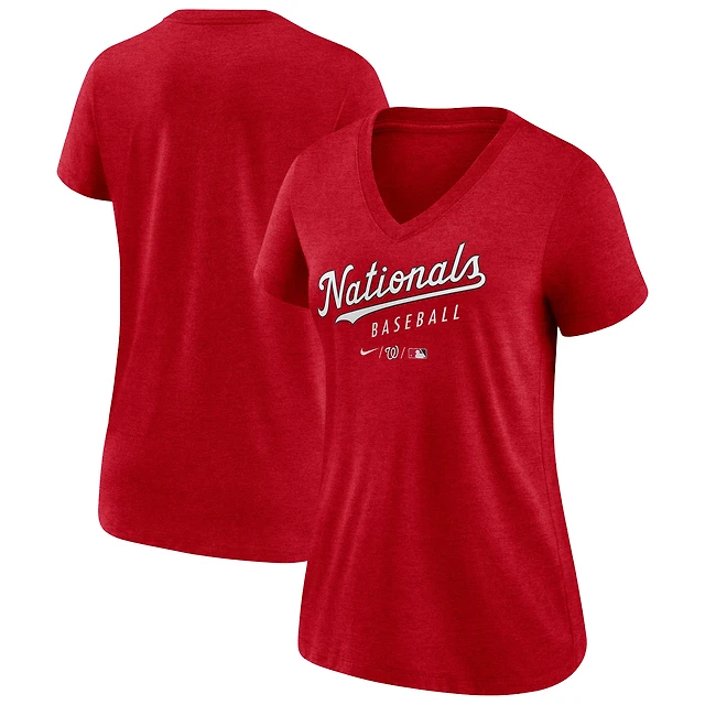 T-shirt à col en V Nike rouge chiné pour femme, collection authentique des Nationals de Washington