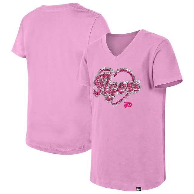 T-shirt à col en V paillettes roses pour fille New Era Philadelphia Flyers