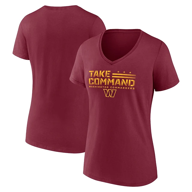 T-shirt à col en V pour femmes Fanatics bordeaux Washington Commanders Hometown Defensive Stand
