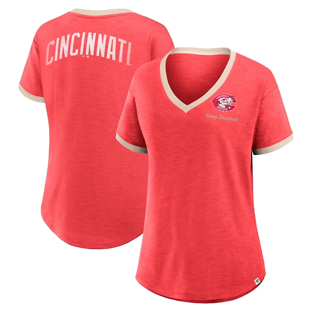 T-shirt à col en V rouge fanatiques pour femmes des Reds de Cincinnati Binge Worthy Stadium Slub