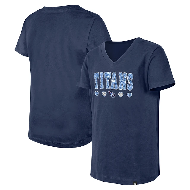 T-shirt à col en V sequins bleu marine Tennessee Titans de New Era pour filles