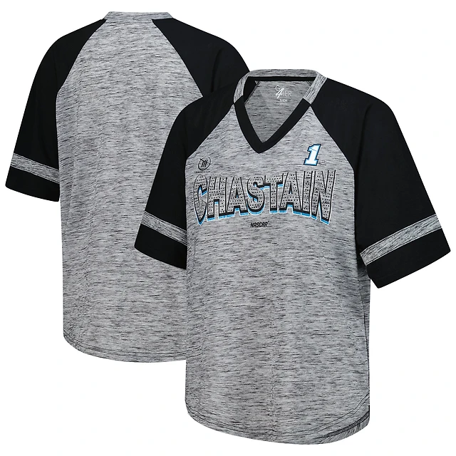 T-shirt à col en V surdimensionné G-III 4Her de Carl Banks Heather Gray Ross Chastain Hall of Fame pour femme