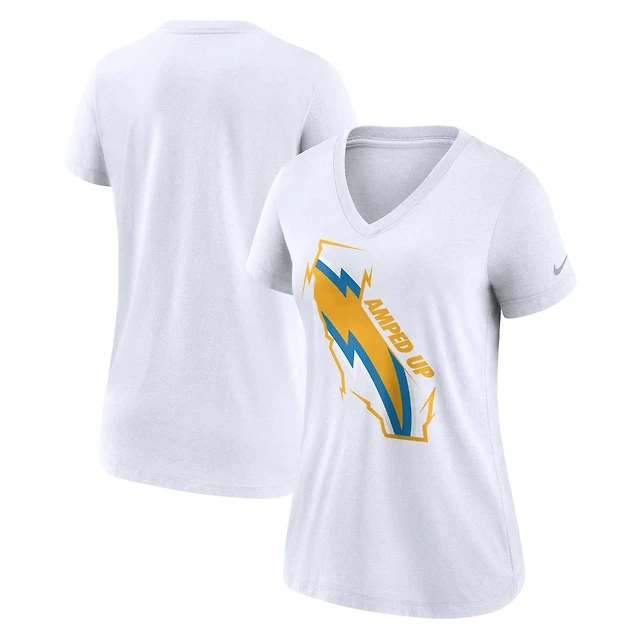 T-shirt à col en V triple mélange Nike Los Angeles Chargers Hometown Collection pour femme, blanc