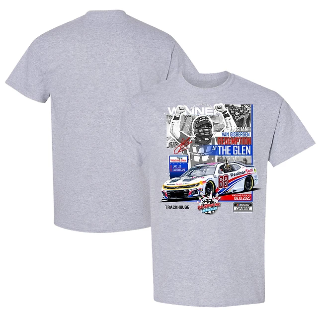 T-shirt à damier gris chiné pour homme, vainqueur de la course Go Bowling at The Glen 2025, Shane van Gisbergen