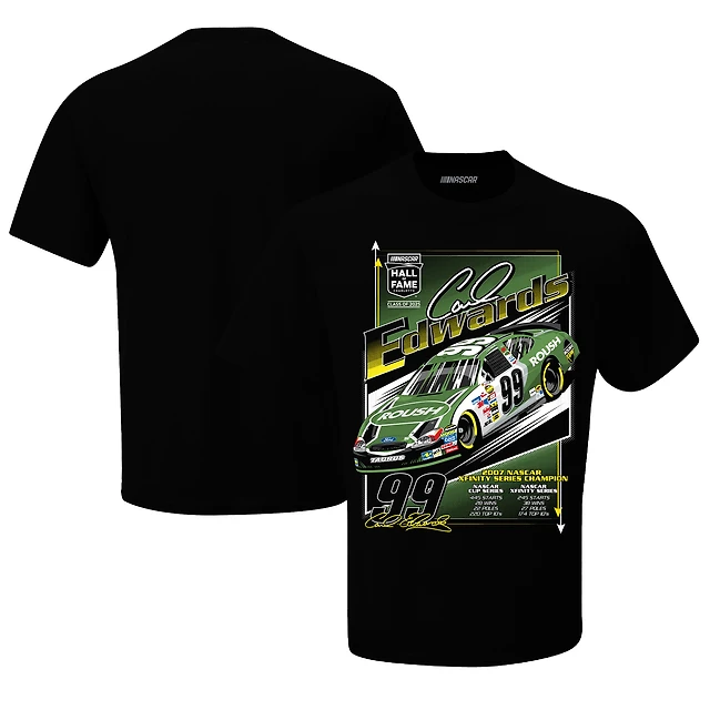 T-shirt à damier pour homme avec logo de Carl Edwards, membre du Temple la renommée NASCAR 2025