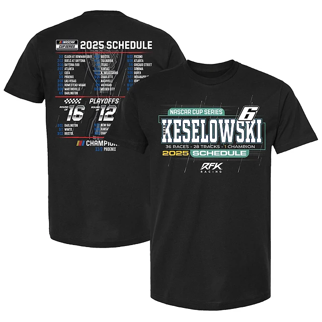 T-shirt à damier pour homme Brad Keselowski 2025 NASCAR Cup Series Schedule Black