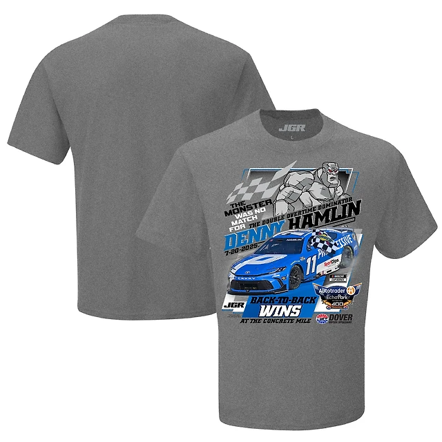 T-shirt à damier pour homme, couleur anthracite chiné, Denny Hamlin, victoire la course 400 Autotrader EchoPark Automotive 2025