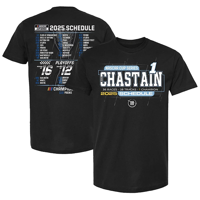 T-shirt à damier pour homme Ross Chastain 2025 NASCAR Cup Series Programme Noir