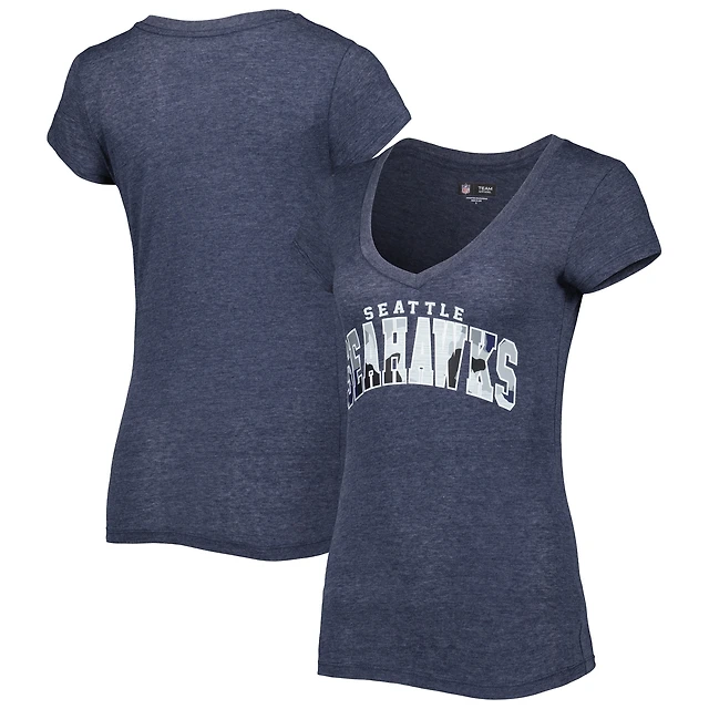 T-shirt à encolure en V pour femme New Era Heathered College Navy Seattle Seahawks Training Camp