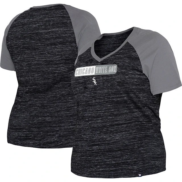 T-shirt à encolure en V raglan teint par espacement pour femme New Era noir Chicago White Sox grande taille