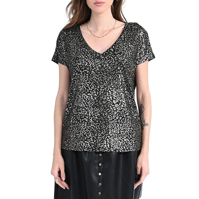 T-shirt à imprimé abstrait et encolure en V