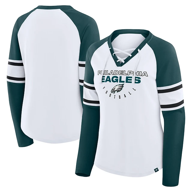 T-shirt à lacets manches longues et col rond pour femme, blanc, grande taille, des Philadelphia Eagles, Redzone