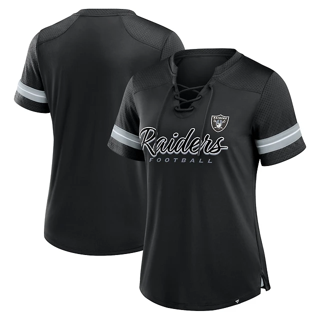 T-shirt à lacets noir Las Vegas Raiders Play Script pour femmes Fanatics