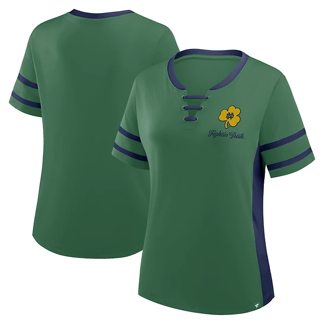 T-shirt à lacets pour femme Fanatics vert/bleu marine Notre Dame Fighting Irish Be Fearless Athena