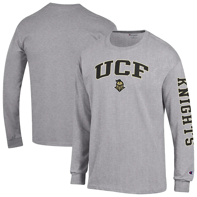 T-shirt à manches longues 2-Hit Champion Heather Gray UCF Knights avec logo Arch Over