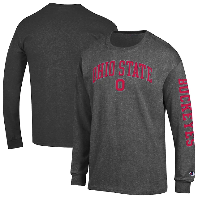 T-shirt à manches longues anthracite pour homme, champion des Ohio State Buckeyes, avec logo Arch Over, 2 coups