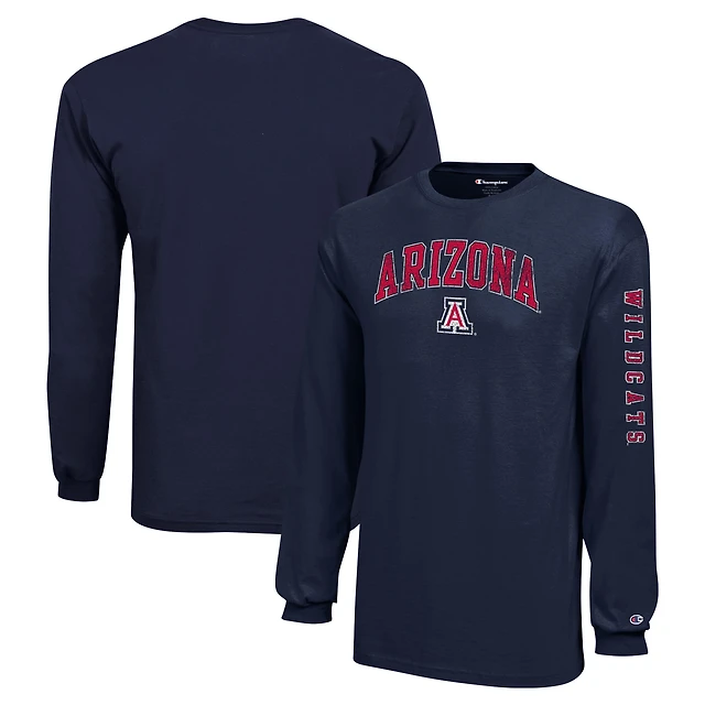 T-shirt à manches longues avec logo vieilli Arizona Wildcats bleu marine Champion des jeunes