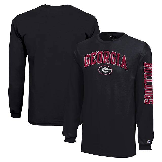 T-shirt à manches longues avec logo vieilli Georgia Bulldogs Black Youth Champion