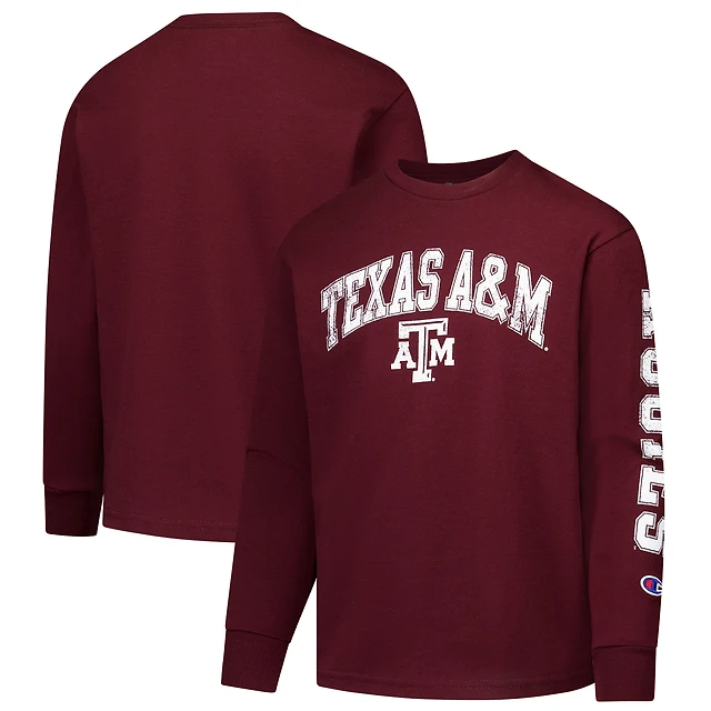 T-shirt à manches longues avec logo vieilli Texas A&M Aggies Champion des jeunes Maroon
