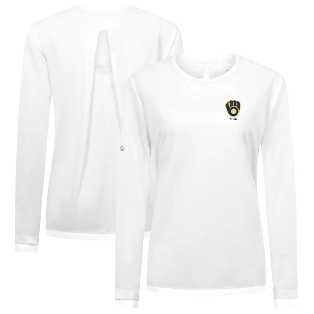 T-shirt à manches longues blanc Levelwear pour femme avec logo principal Sequoia des Milwaukee Brewers