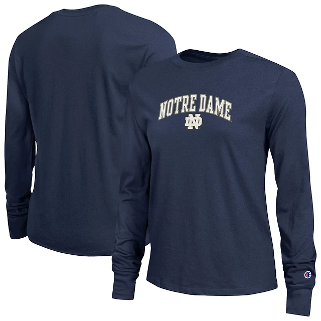 T-shirt à manches longues bleu marine avec logo Arch Over de Notre Dame Fighting Irish pour femme